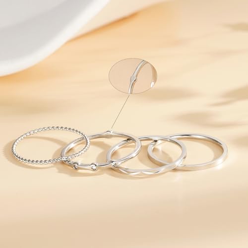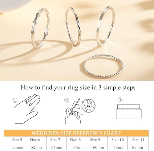 WEDDINEN S925 Sterling Silver Gold Rings for Women Non Tarnish, 4PC Stackable 18K Gold Plated Thin Thumb Ring Set Cubic Zirconia Dainty Stack Gold Knuckle Rings Set Size 6-10