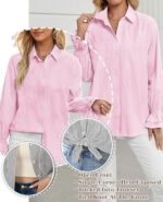 WHO IN SHOP Women’s Striped Button Down Shirts Smocked Cuffed Boyfriend Shirt Long Sleeve Blouse Top with 3 Pockets