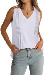 WIHOLL Summer Womens Tank Tops Loose Fit Pleated 2025 V Neck Sleeveless Tops Casual(S-3XL