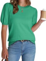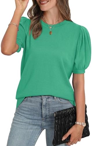 WIHOLL Women’s Puff Short Sleeve Sweater 2025 Spring Summer Tops Trendy Business Casual Outfits Work Blouses Clothes