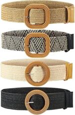 WILLBOND 4 Pcs Straw Woven Belt Elastic Stretch Rattan Buckle Waist Belt Women Skinny Raffia Dress Waist Band