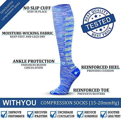 WITHYOU Compression Socks 15-20 mmHg is Best Athletic for Men & Women Running Flight Travel Nurses Pregnant