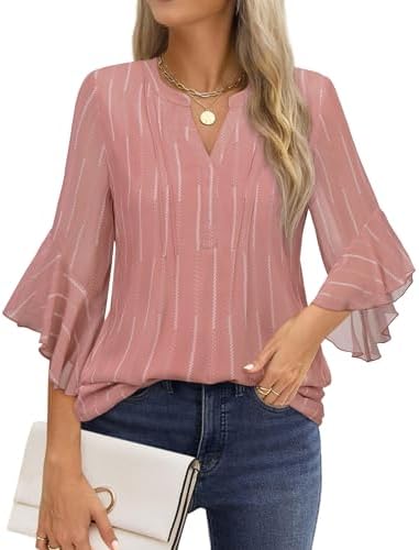 Womens 3/4 Sleeve Tops Dressy Casual Work Office Blouses Chiffon Business Casual Shirts