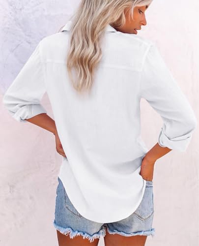 Womens Button Down Shirts Cotton Dress Shirts Oxford Shirts Long Sleeve Work Blouses Collared Tops Tunics with Pocket