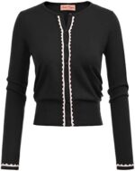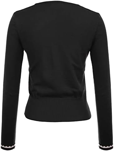 Women’s Cardigan Sweater Color Block Long Sleeve Crew Neck Knit Cardigan Trendy Cropped Cardigan Shrug