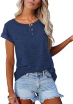 Be the first to review “Women’s Casual Short Sleeve T-Shirts Summer Basic Crew Neck Henry Shirt” Cancel reply