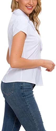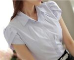 Women’s Cotton Collared Business Casual Button Down Blouse Tulip Sleeve Shirt