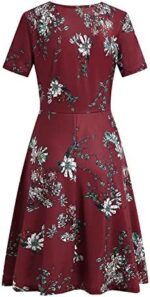 Women’s Elegant Criss-Cross V Neck Vintage Short Sleeve Work Casual Fit and Flare Tea Dress with Pockets 980