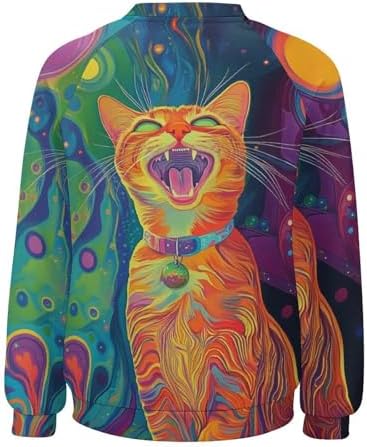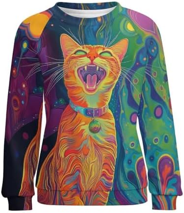 Womens Funny Cat Sweatshirt Long Sleeve Abstract Printed Crewneck Pullover Shirts 2024 Fall Tunic Tops for Grils