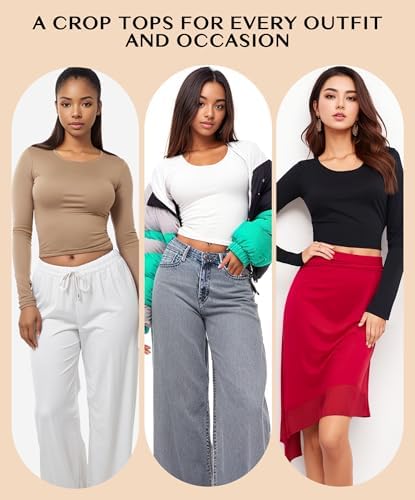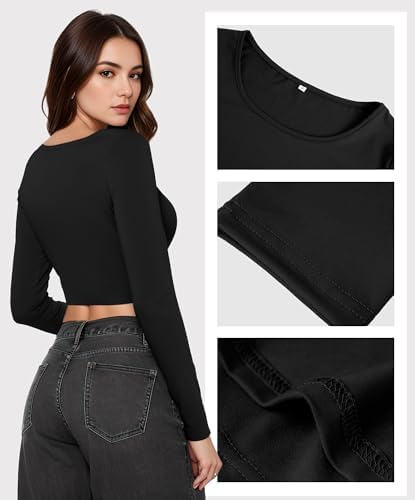 Womens Long Sleeve Crop Top Scoop Neck Sexy Slim Fitted Casual Base Layer Lightweight Soft Workout Shirt Going Out Tops