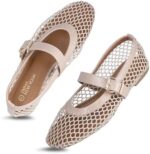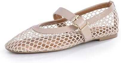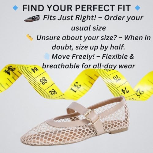Women’s Mesh Ballet Flats – Fishnet Mary Jane Flats with Adjustable Buckle Strap, Breathable & Stylish Ballerina Shoes