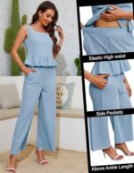 Home Trendy Festival & Party Wear Women’s Summer 2 Piece Outfits Crop Tank Top Wide Leg Pants Loose Tracksuits with Pockets S-XL