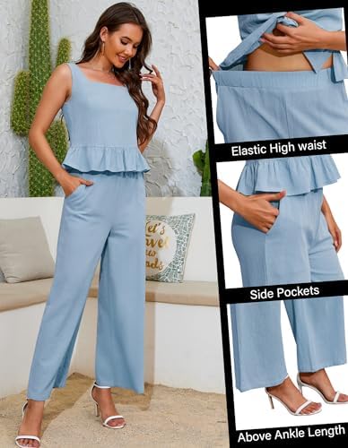 Women’s Summer 2 Piece Outfits Crop Tank Top Wide Leg Pants Loose Tracksuits with Pockets S-XL