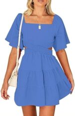 Women’s Summer Dresses Square Neck Casual Short Sleeves Crossover Elastic Waist Party Mini Dress