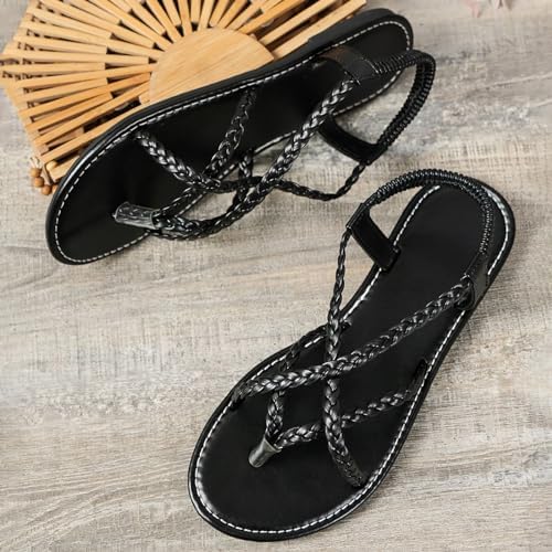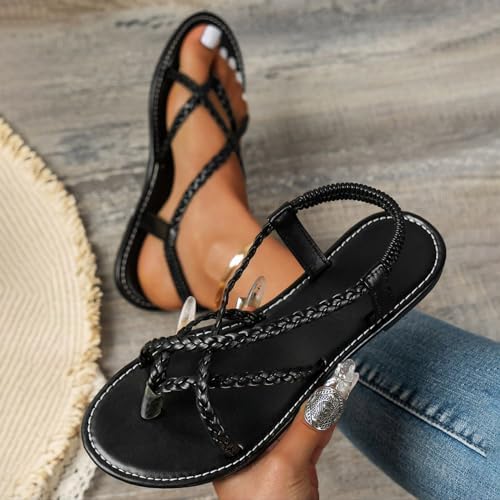 Womens Summer Thong Sandals Casual Strappy Gladiator Flat Sandal Comfortable Flip Flop Elastic Ankle Strap Beach Shoes