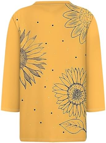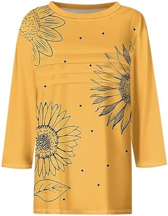 Womens Tops Fashion 3/4 Sleeve Round Neck Shirts Casual Trendy Print Blouses Pleated Front T Shirts