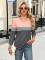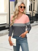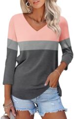 Women’s V Neck 3/4 Sleeve Tops Color Block/Solid Shirts Basic Summer Tees