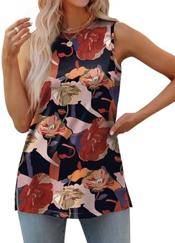 XIEERDUO Womens Tank Tops Crewneck Loose Fit Basic Casual Summer Side Split Sleeveless Shirts
