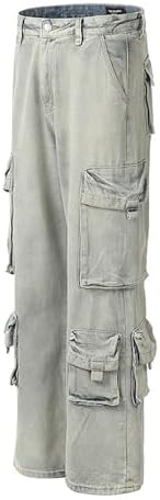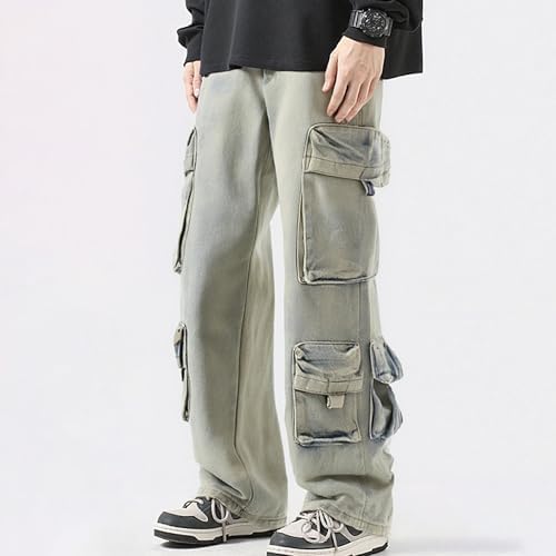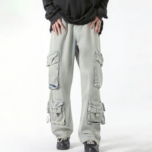 XYXIONGMAO Men’s Blue Cargo Pants Multi-Pocket Washed Denim Streetwear Sweatpants Hip Hop Casual Jeans Techwear Overalls