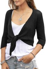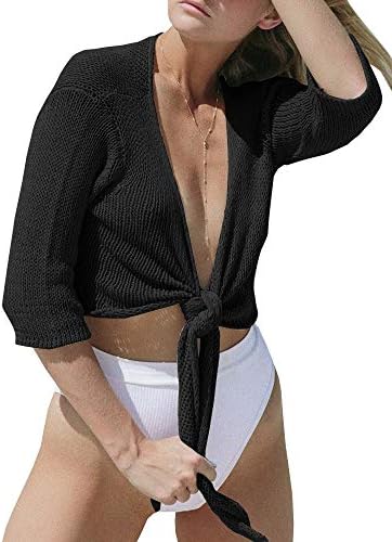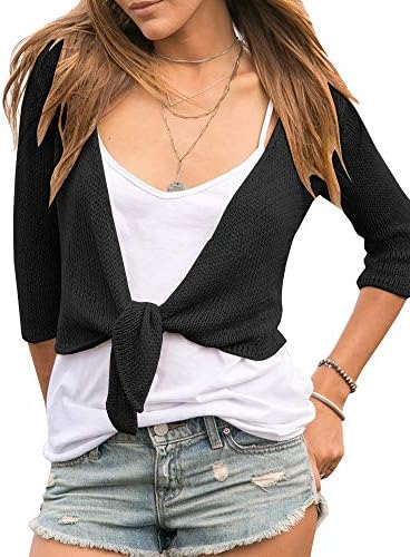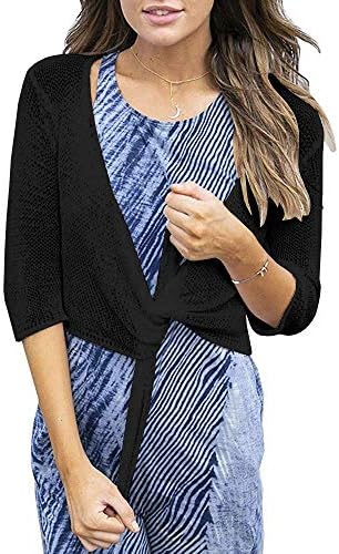 YeMgSiP Women’s Tie Front Shrug 3/4 Sleeve Bolero Sheer Knotted Lightweight Cardigan Sweaters Short Shawl Tops