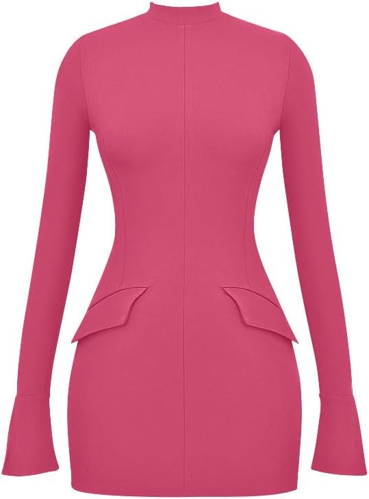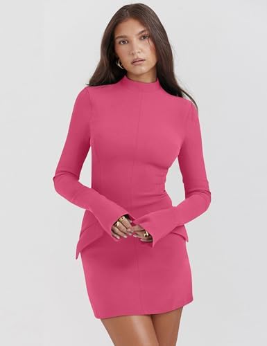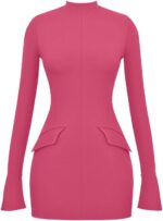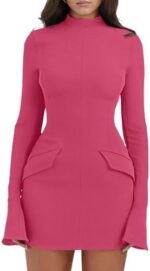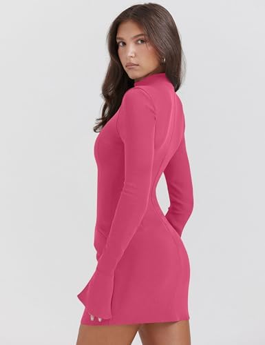 Home Trendy Festival & Party Wear YMDUCH Women’s Long Sleeve Mock Turtle Neck Bodycon Mini Tank Short Party Dress
