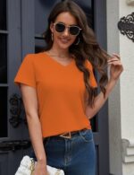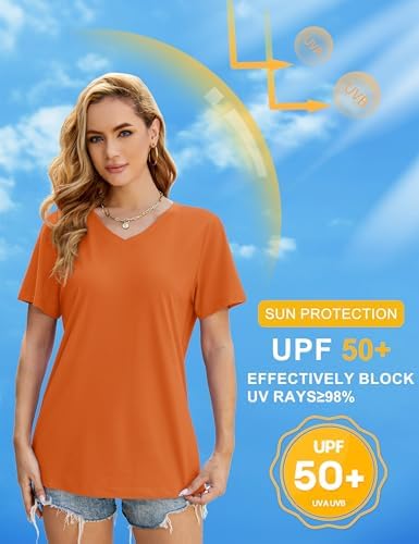 YUCOLEN UPF 50+ Basic V Neck Short Sleeve T Shirts for Women