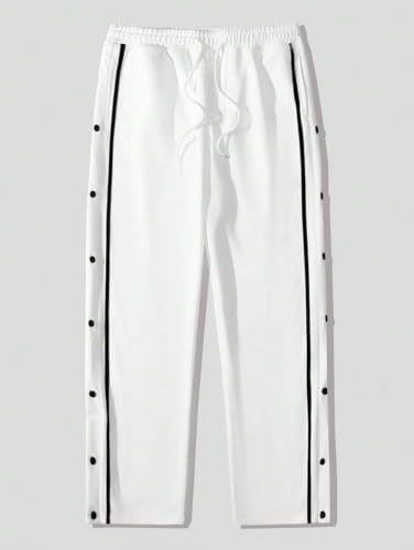 ZAFUL Men’s Casual Sweatpants Drawstring Waist Contrast Long Stripe Side Buttons Jogger Pants Loose Fit Lounge with Pockets