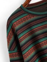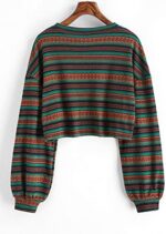 ZAFUL Women’s Tribal Ethnic Graphic Cropped Knitwear Bohemian Long Sleeve Pullover Sweater Boho Drop Shoulder Knitted Top