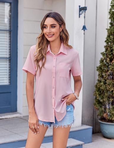 Zeagoo Womens Button Down Shirt Bust Pocket Short Sleeve Blouses Business Casual Work Tops Summer Outfits