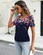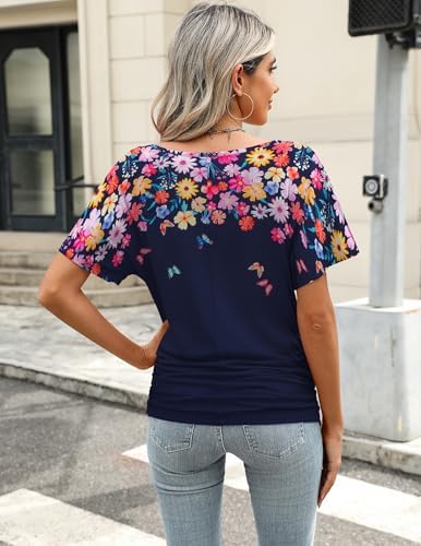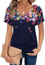 Zeagoo Women’s Short Sleeve Shirts V Neck Blouse Ruched Business Casual Basic Tunic Tops S-3XL
