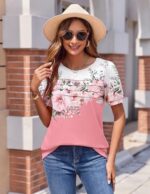 Home Women's Fashion Tops & Blouses Zeagoo Womens Short Sleeve Tops Floral Boho Shirts Pleated Crewneck Summer Outfit Puff Sleeve Blouses Casual Tunic