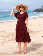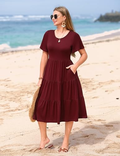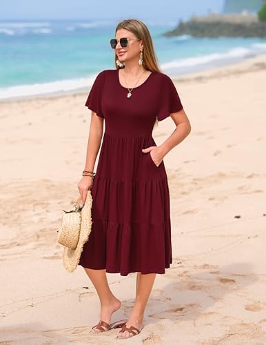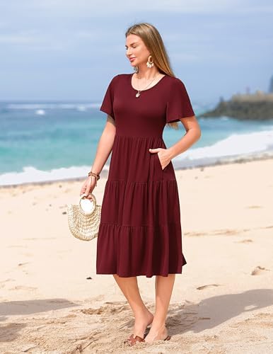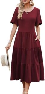 Zeagoo Women’s Summer Dress Midi Floral Flutter Short Sleeve Casual Dresses with Pockets Tiered Flowy Boho Beach Dress